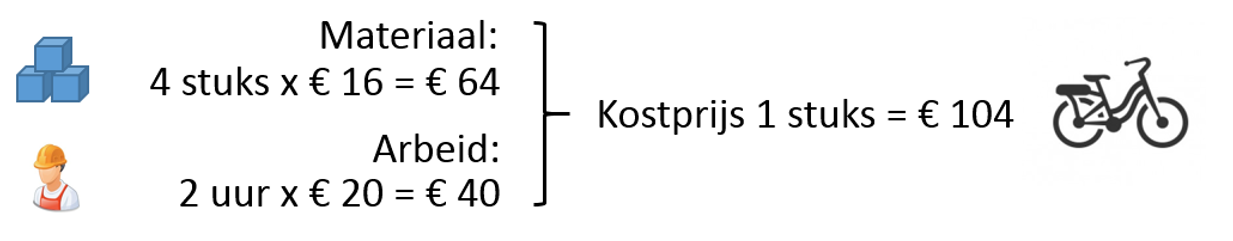 We gaan allereerst beschrijven hoe de voorraadgestuurd boekingsgang werkt. In ons voorbeeld maken we een fiets waarvan we de kostprijs van EUR 104 hebben vastgesteld aan de hand van een stuklijst: