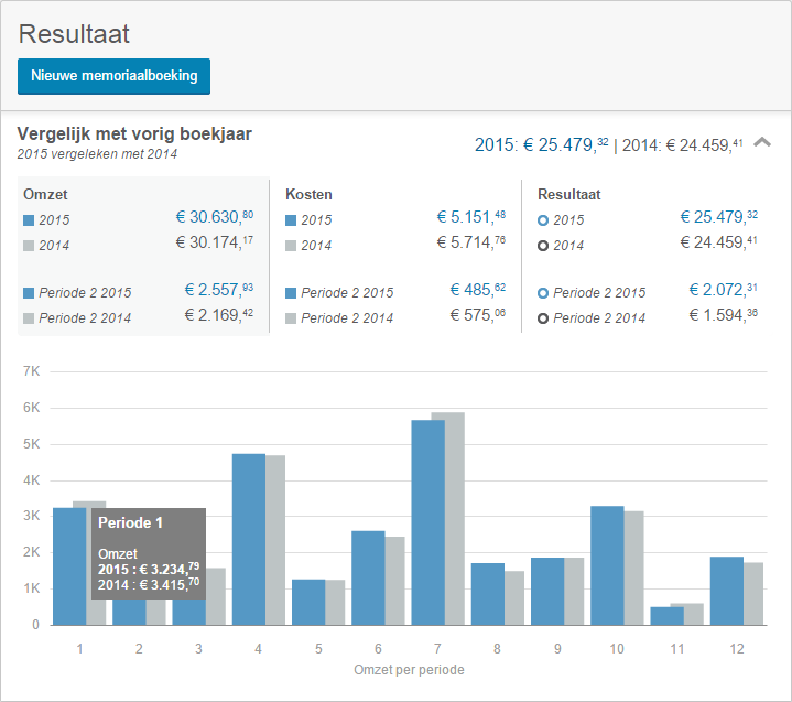 Hoe kan ik mijn omzet, kosten of resultaat vergelijken met het voorgaande jaar?