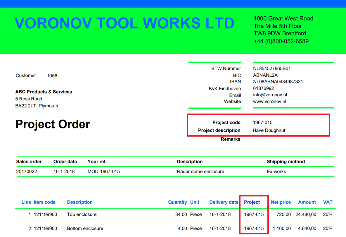 (Click to enlarge) We have added the Project Code and Project description to the sales order header and to the sales order lines: