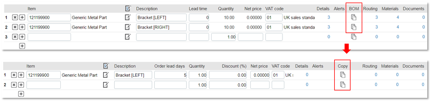 A small change of terminology Since we can now copy more than just an existing BOM, but also shop orders and quotation lines, we renamed the caption of the icon on the quotation entry screen from BOM to Copy: