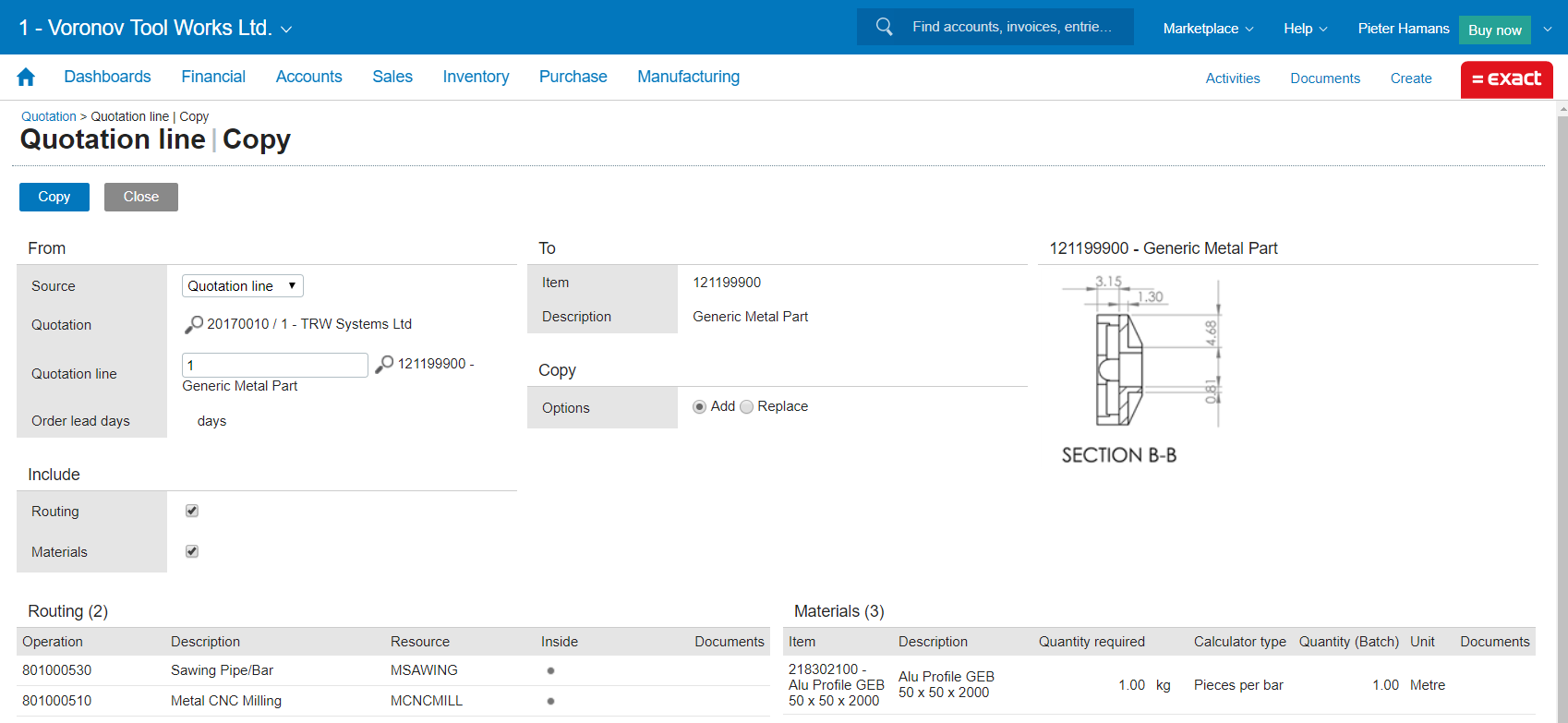 Exact for Manufacturing Ease of Use: Quotation line copy of BOM, shop order or quotation line