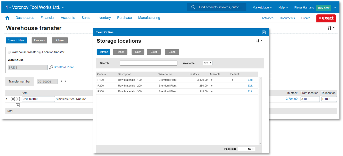 In addition, the Smart Shop Floor app is extended for issuing material from inventory to shop orders from a chosen storage location, and receiving products and by-products from shop orders to inventory on a chosen storage location. Multiple storage locations per item Each inventory item is stored on one or more storage locations, provided that the used warehouse is using storage locations.