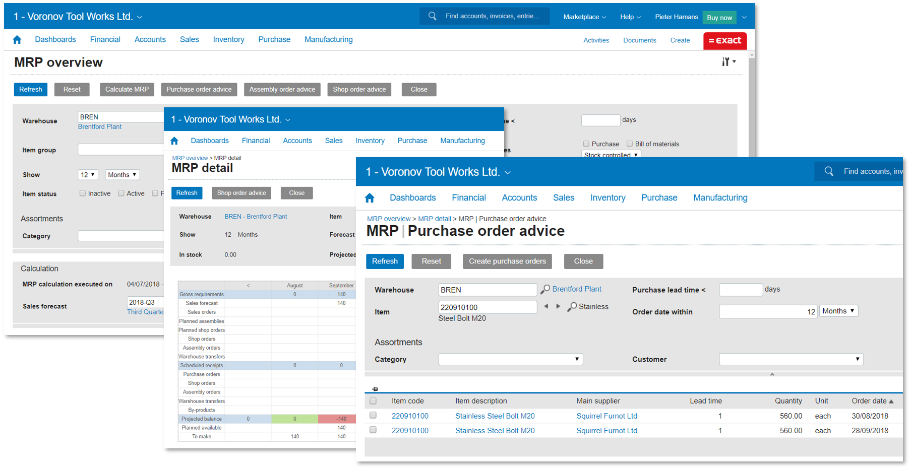 Three editions of Exact Online for Manufacturing are available: Standard, Advanced and Premium. We will briefly explain the purpose of the Premium edition and its content. Premium has been developed for small and medium repetitive manufacturers requiring mature material planning.