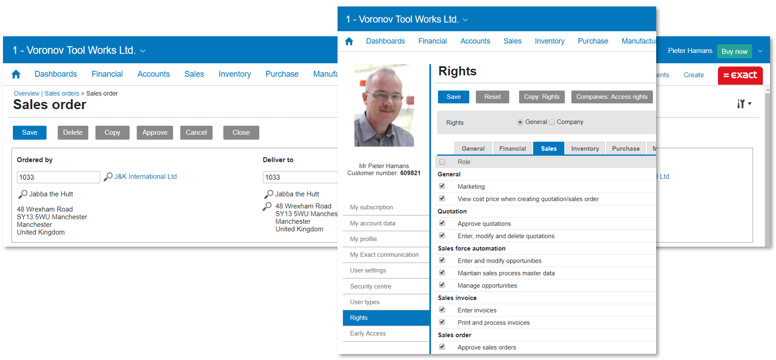 (Click to enlarge) Quotation and sales order approvals Assigning rights to users to approve quotations and sales orders. Prevent unapproved quotations and sales orders from progressing to printing/confirming.