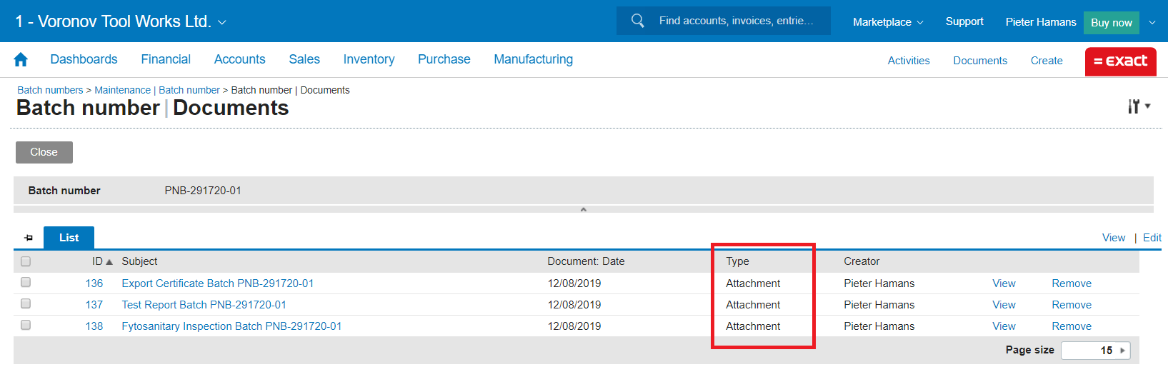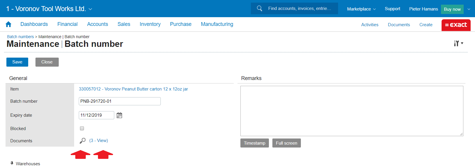 Exact for Manufacturing / Wholesale Distribution - Maintaining documents linked to serial and batch number items