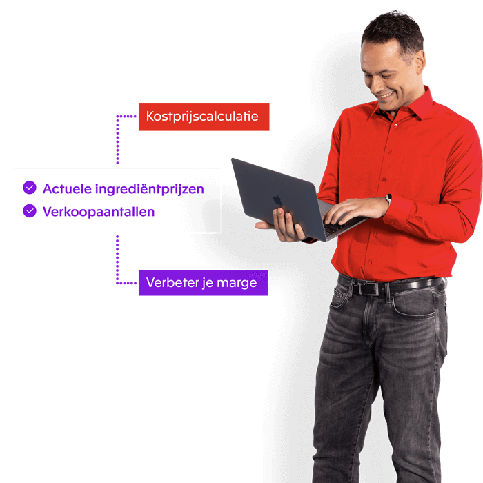 - Ingrediënten en prijzen automatisch bijgewerkt: 100+ leverancierskoppelingen zoals Sligro, HANOS, Bidfood