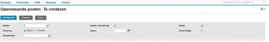 Er zijn verschillende methoden om tot een overzicht van het openstaande saldo te komen, echter kunnen tussen de diverse methoden verschillen ontstaan. Het gebruik van het filter vormt een van de belangrijkste redenen. Met behulp van het filter, het lichtgrijze vak bovenin uw scherm, kunt u bepalen aan de hand van welke criteria Exact Online een overzicht moet genereren. U kunt bijvoorbeeld een overzicht op basis van periode en op basis van datum opvragen.