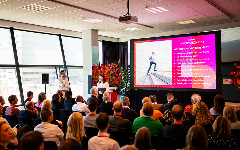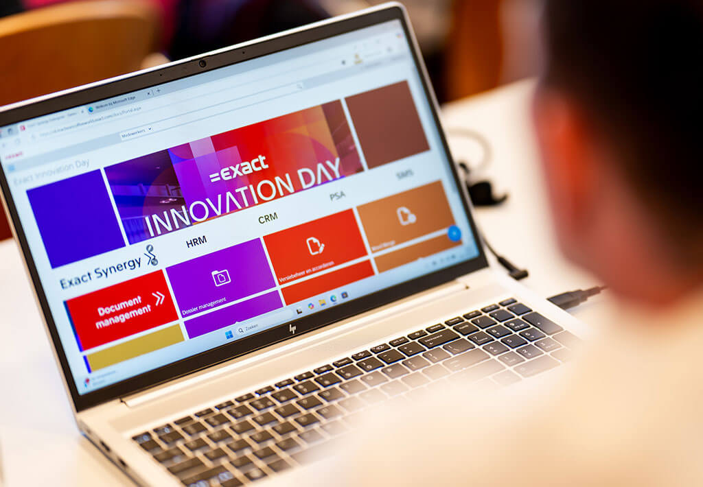 Daarom organiseren we meerdere keren per jaar een Innovation Day, zowel fysiek op locatie als virtueel. Hier krijg je alle tips, tools en insights waarmee je nog slimmer met Exact kan werken.