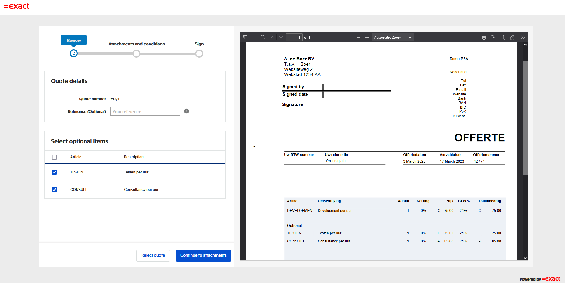 Offerte online accepteren met handtekening