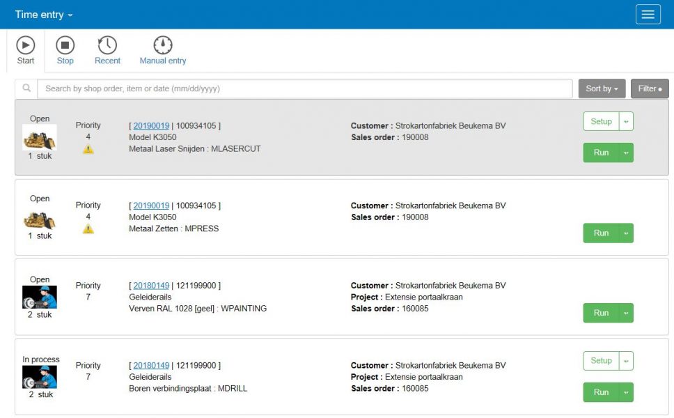 The priorities are also visible to people on the shop floor via the Smart Shop Floor app. With the sorting options, the orders are sorted by priority. This way your employees are always up to date with the most up-to-date status and are working on the right orders!