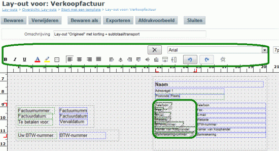 - Naast het Bewaren als, kunt u de lay-out ook exporteren. U slaat de lay-out op uw computer op en kunt deze in elke andere administratie importeren. Indien u in meerdere administraties (min of meer) dezelfde lay-out wilt gebruiken is dit erg handig. Ook wanneer u voor uw klanten lay-outs maakt, is dit een uitstekende tool.