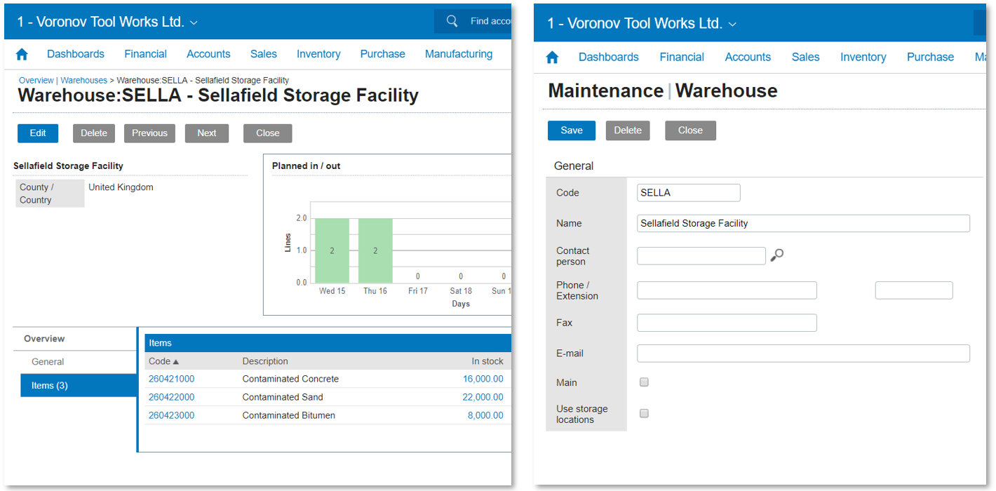 Storage locations in Exact for Wholesale Distribution and Manufacturing