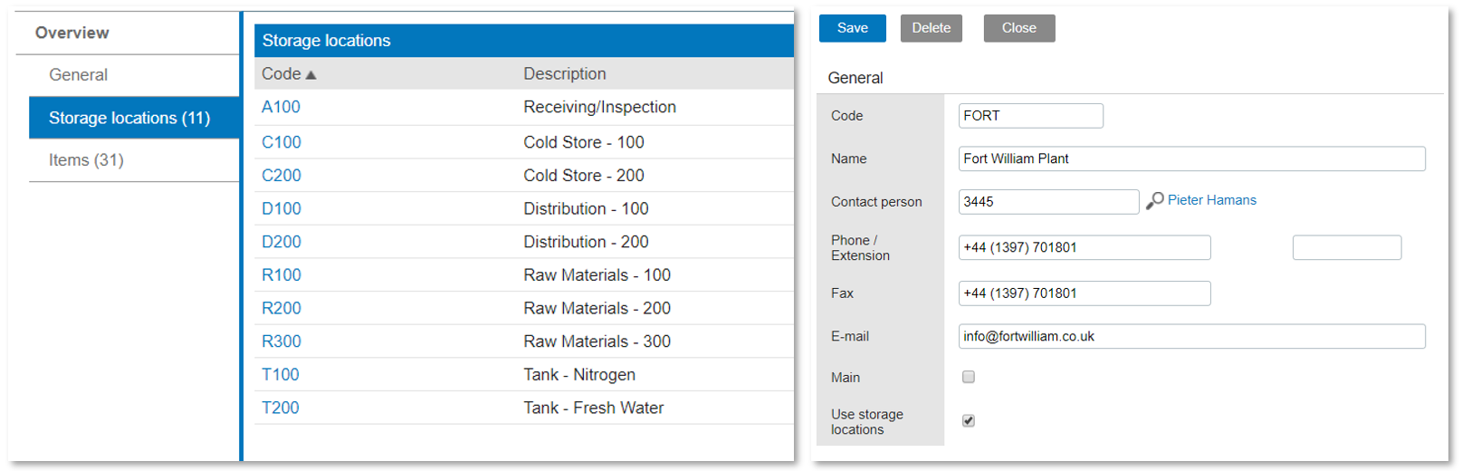 (Click to enlarge) The advantage of multiple storage locations is the professional organization: we are well prepared to use a Warehouse Management System (WMS) or scanning solution. The disadvantage of multiple storage locations is that we need a good discipline: Are we emptying locations with little stock first? Are we first using floor stock and then only bulk stock? Are we used to stock under inspection not being available for use? See also Support for warehouse location management in manufacturing.