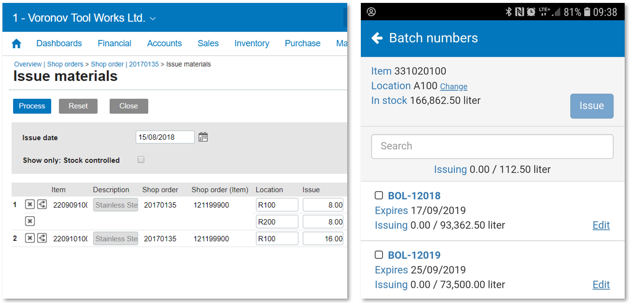 (Click to enlarge) The advantage of fixed storage locations is the tidiness: we can find or put away an item with ease. The disadvantage of fixed storage locations is that we are not flexible with our shelf space: Once we need extra space for an item we cannot put it away at a different or a second location. Using multiple storage locations When it does matter where a particular item is stored, for example because we also use serial- or batch numbers, or because we want to make efficient use of limited shelf space, then it may be required that we use multiple storage locations. This way we can identify where the batches are with the nearest expiry date, or differentiate between items under inspection, in a bulk location or in a floor stock location. Only in Wholesale Distribution or Manufacturing Premium we can use multiple storage locations (per item).