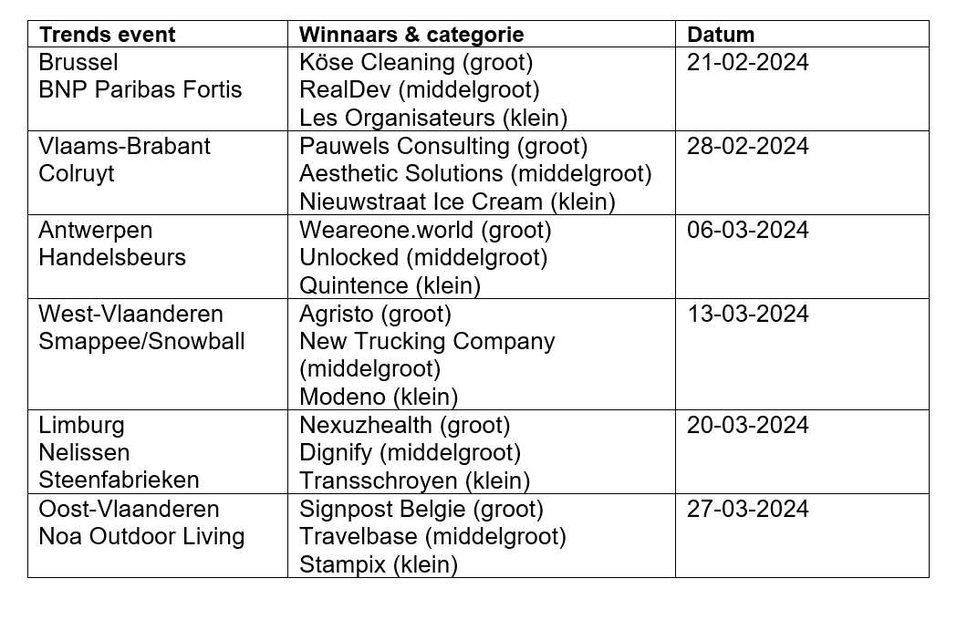 Het overzicht van de winnaars per regionaal event wordt na ieder evenement geüpdatet om de voortdurende groei en prestaties van deze inspirerende bedrijven te volgen.