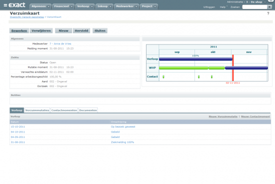 Vanuit de verzuimregistratie is via een grafiek in één oogopslag zichtbaar in welke fase van de Wet Verbetering Poortwachter de ziekmelding valt. Door op de betreffende fase te klikken wordt een document geopend waarin informatie over de Wet Verbetering Poortwachter is terug te vinden en de betreffende fase met bijbehorende acties in uitgelegd wordt.