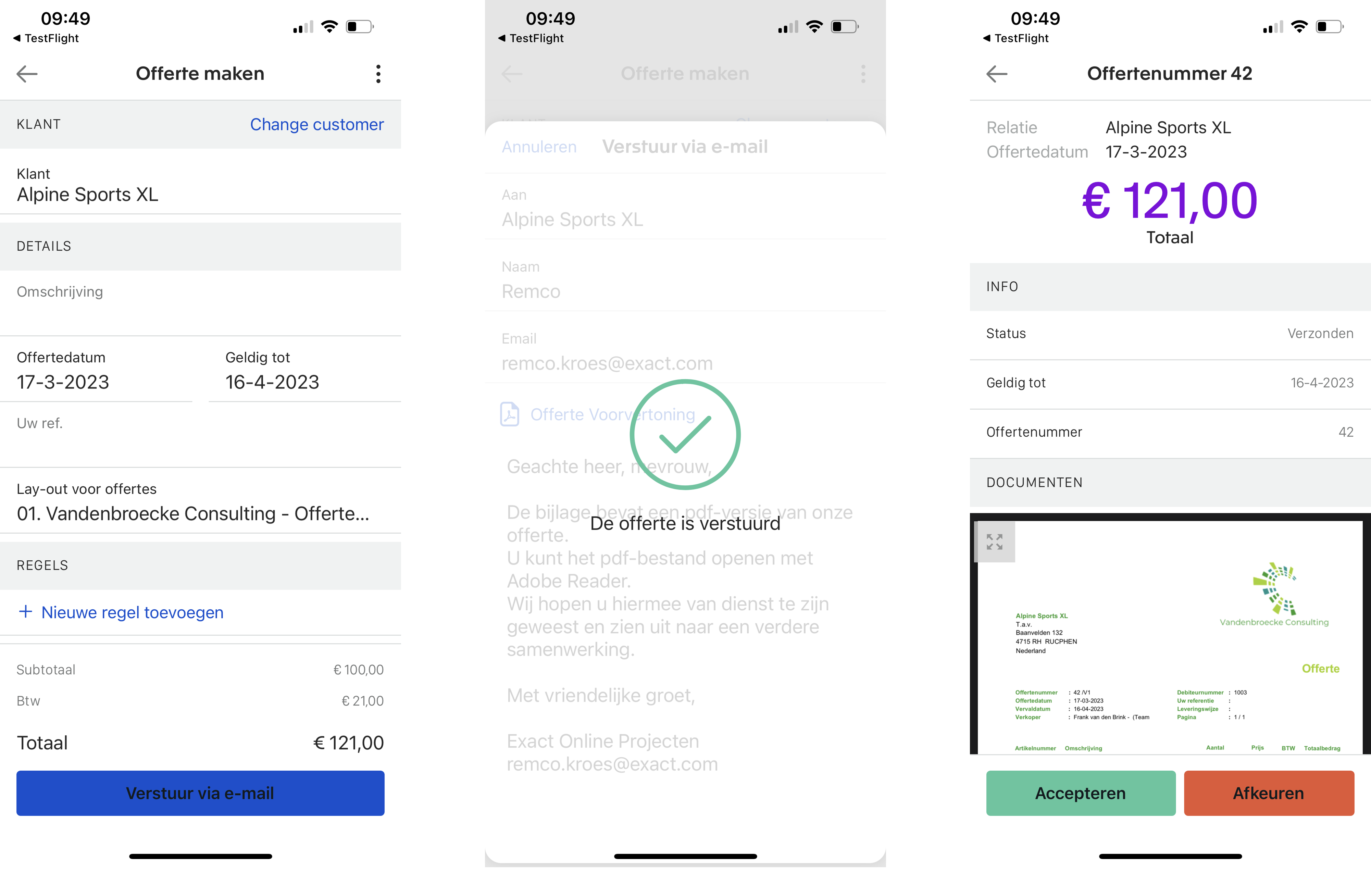 Offerte sturen via de mobile app