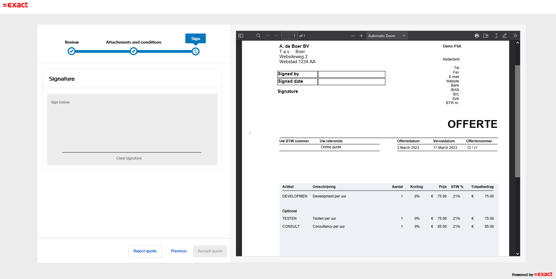 Offerte online accepteren met handtekening