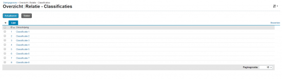 Wanneer u hiermee klaar bent, kiest u voor ‘Bewaren’. In onderstaand voorbeeld ziet u dat de omschrijving van de eerste twee classificaties is gewijzigd. Uiteraard kunt u alle acht classificaties op deze manier inrichten.